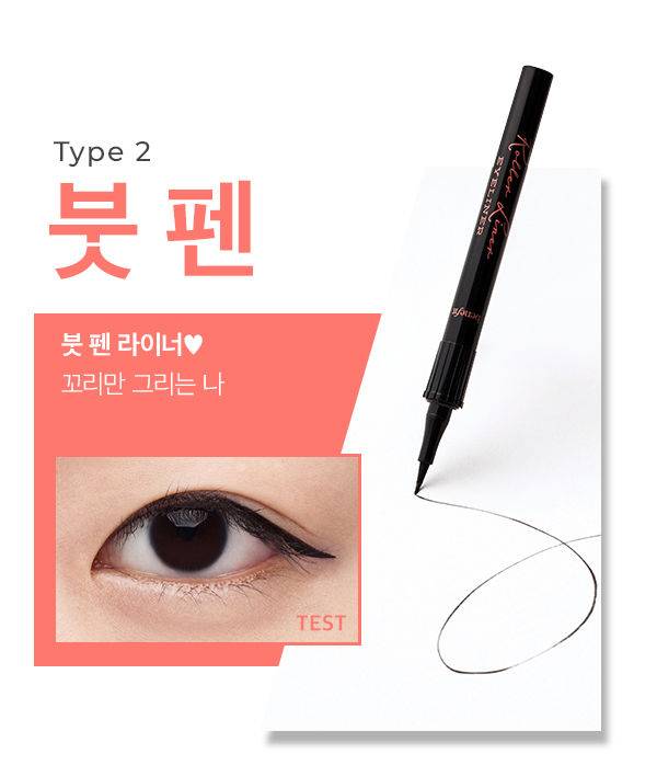 날렵하게 라인을 빼기 좋을 뿐만 아니라 오랜 시간 처음 그린 그대로 유지되는 붓 펜 아이라이너. 섬세한 메이크업에는 단연 최고다. 하지만 두껍게 그리기는 어렵기 때문에 아이라인 꼬리만 그리거나 속눈썹 사이를 자연스럽게 메꿀 때 사용하는 것이 좋다.