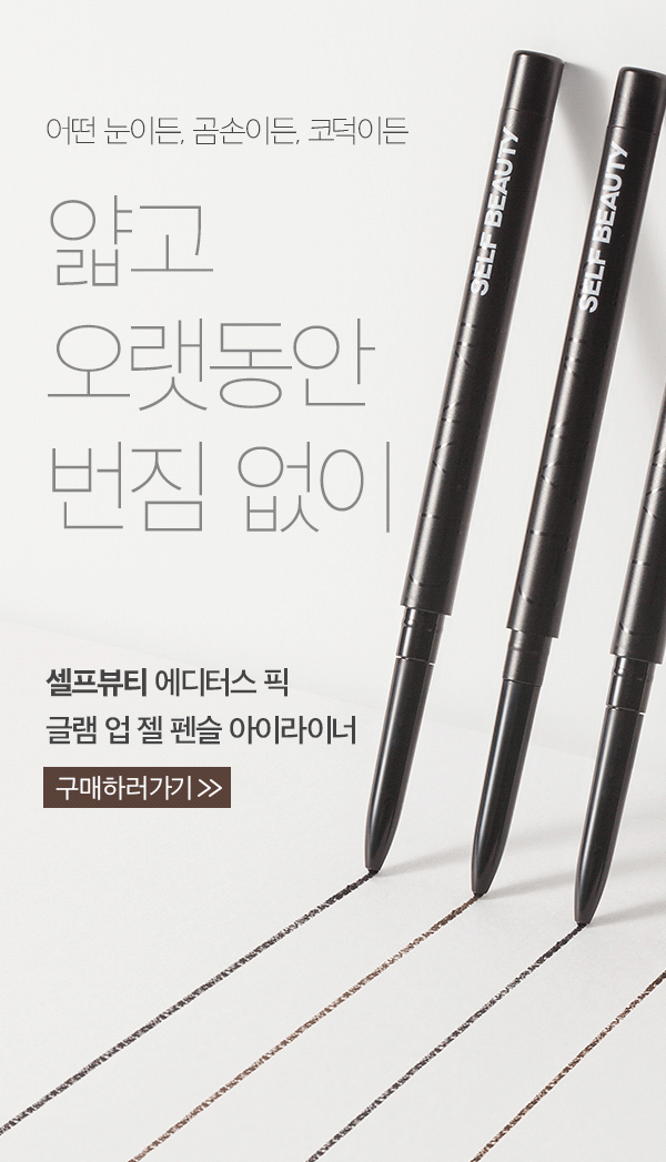 2. 1.5mm 초슬림 펜슬로 섬세하고 날렵한 라인 연출이 가능한 셀프뷰티 글램 업 젤 펜슬 라이너 #블랙 0.05g 12,000원.