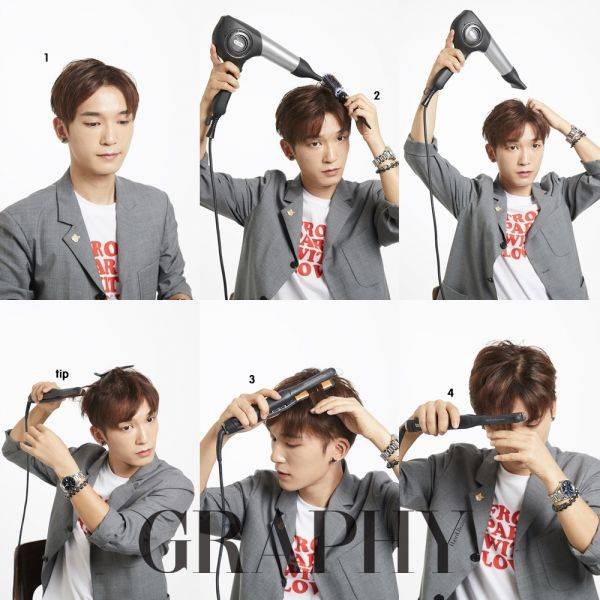 TIP. 가일컷은 앞머리 안쪽의 볼륨과 옆머리를 최대한 볼륨감 있게 넘기는 것이 포인트. 그리고 광택감 있게 스타일링하면 끝!