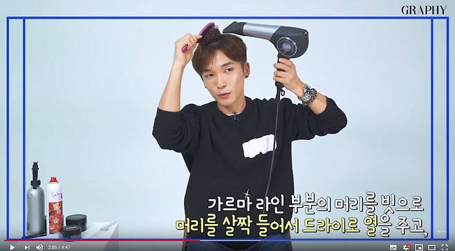 2. 드라이를 할 때는 가르마를 경계로 볼륨을 살려주는 것이 가장 중요하다. 손이나 롤빗 등을 이용해 최대한 볼륨을 살려주자!