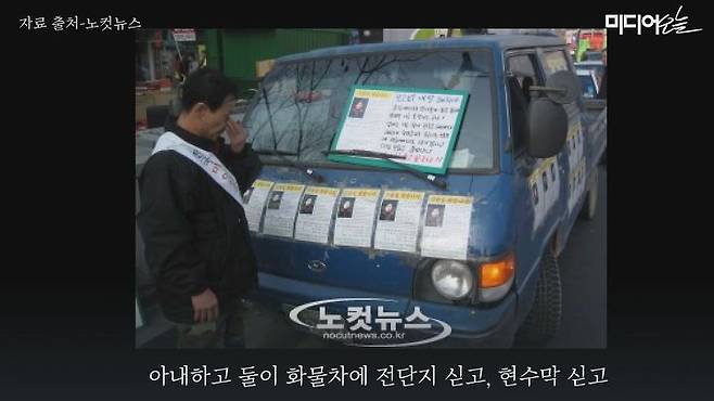 혜희씨를 찾는 전단지와 현수막을 싣고서