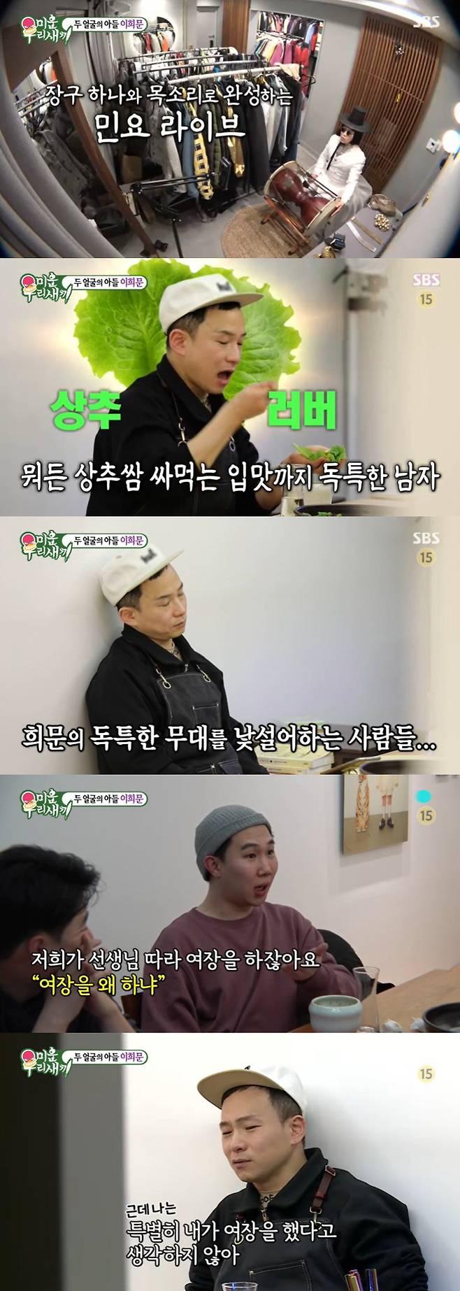 28일 방송된 SBS 예능프로그램 '미운 우리 새끼'에서는 소리꾼 이희문의 일상이 최초 공개됐다.