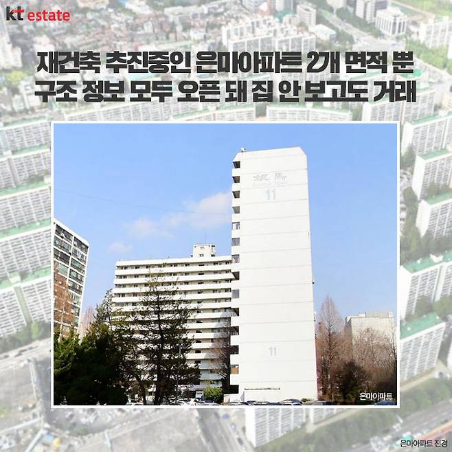 또한 아파트의 경우 이미 구조는 평면도를 통해 쉽게 이해할 수 있는데다 동, 층만 알면 대충 향은 어떤지 뭐가 보이는지 정도도 알 수 있습니다. 예를 들어 은마아파트 같은 경우는 전용면적이 2개뿐이라 구조가 복잡할 것도 없습니다. 온라인 지도 서비스도 잘 돼 있어 아파트 단지 곳곳을 살펴 볼 수도 있죠.