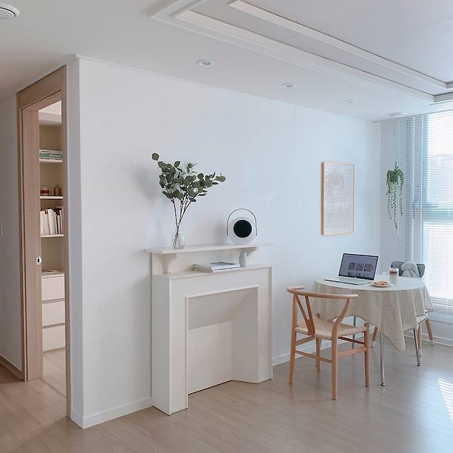 지은 지 4년 정도 지나 비교적 신축 아파트인 데다 전체적으로 밝은 분위기의 집이라 도배와 필름 시공, 홈스타일링만으로도 충분히 마음에 드는 결과를 얻을 수 있었어요.