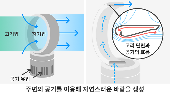 공기를 흡입해 바람을 생성시키는 원리이며