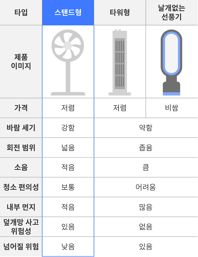 오늘은 선풍기 타입에 대해 알아보도록 하겠습니다.