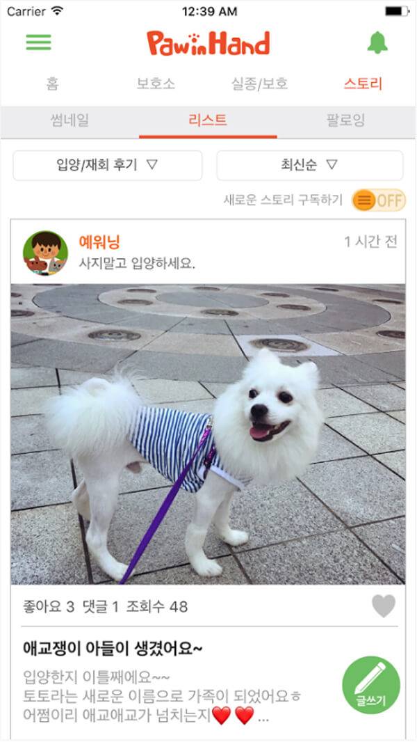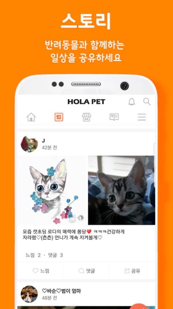 반려동물에 관심 있는 사용자라면 누구나 자유롭게 정보를 공유하고 친목을 나눌 수 있는 '올라펫'에는 스토리, 외출, 캐스트, 입양, 기부 등 다양한 서비스가 마련되어 있다. 우선 스토리에서는 반려동물과의 행복한 일상을 공유할 수 있으며, 위치정보를 이용해 사용자 주변의 올라펫 친구를 만날 수 있다. 이어 외출에서는 반려동물 동반 가능 펜션, 카페, 식당 등의 정보를 파악할 수 있다.