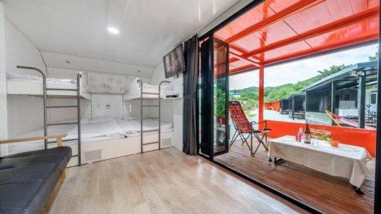 강촌 버즈글램핑은 가평역에서 10분 거리에 위치하여 접근성이 뛰어나 뚜벅이 여행자들에게 추천하고픈 글램핑장인데요. 최소 2명에서 최대 10명까지 머물 수 있는 다양한 객실 타입을 보유했어요.