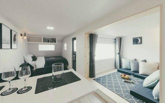 객실은 모던하고 난방시설도 잘 갖추어져 있어요. 게다가 빔프로젝터도 설치돼 있으니 저녁에는 오붓하게 영화 한 편 감상해도 딱 좋겠죠?