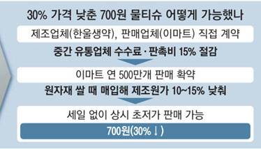 '국민가격 700 물티슈'는 결과적으로 제조업체와 유통업체 모두가 윈윈하는 사례가 됐죠.