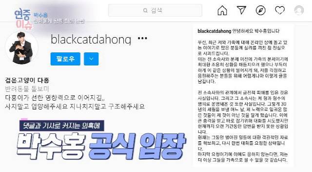 아직도 침묵으로 일관하는 박수홍의 형과 공식입장을 내고 억울함을 토로하는 박수홍이 과연 어떤 결론을 맞을지 귀추가 주목된다.