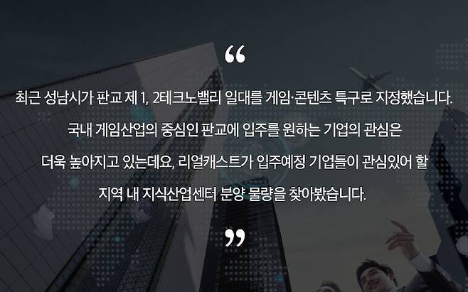 판교 개발에 대한 기업들의 기대감이 높아지고 있는 가운데 지역 내 들어설 지식산업센터에도 관심이 높아지고 있습니다.