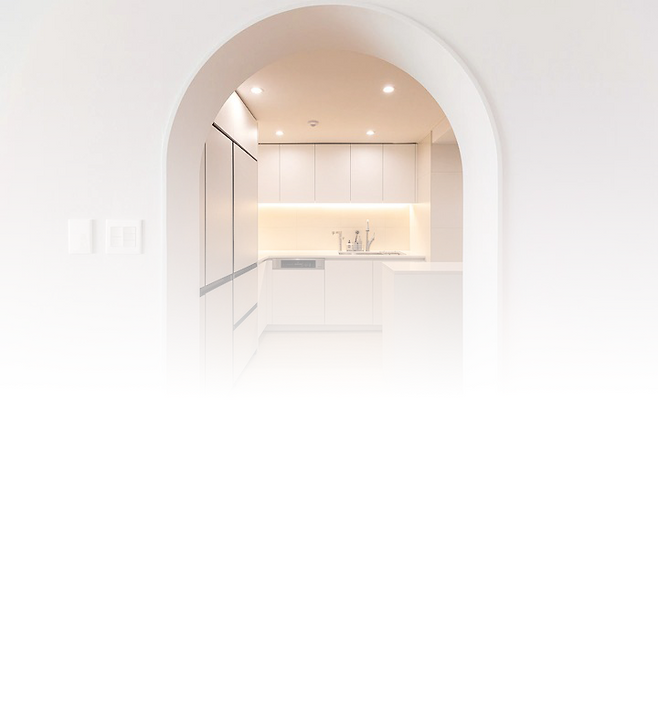 목동 신시가지 3단지 현장은 주방이 독립된 구조로 구성된 형식이었는데요, 주방의 위치를 그대로 활용하면서도 주방을 고립된 공간이 아닌 행복한 공간으로 만들기 위해 입구에 아치 포인트를 주었고, 주방 상부장 하단에 간접 조명을 설치하여 칙칙한 공간이 아닌, 더 밝고 포근한 공간으로 만들기 위해 노력하였습니다 ^^