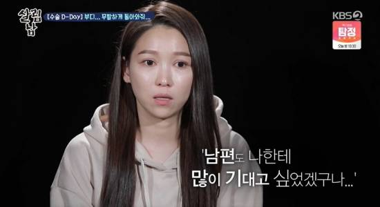 이후 노지훈은 무사히 수술을 받았고, 이은혜는 수술실 밖에서 기다렸다. 이은혜는 "(수술 직후 나에게) 얼굴 보여달라고 하더라. '얘도 나한테 많이 기대고 싶었겠구나' 생각이 들었다. '신랑도 기댈 수 있는 품을 내줘야겠구나' 그런 생각을 많이 했다"라며 눈물 흘렸다.