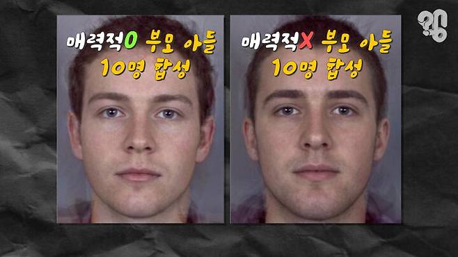 같은 실험을 한 결과 매력적인 부모들의 아들 합성사진과 그렇지 못한 부모들의 아들 합성사진은 크게 차이가 없었다.