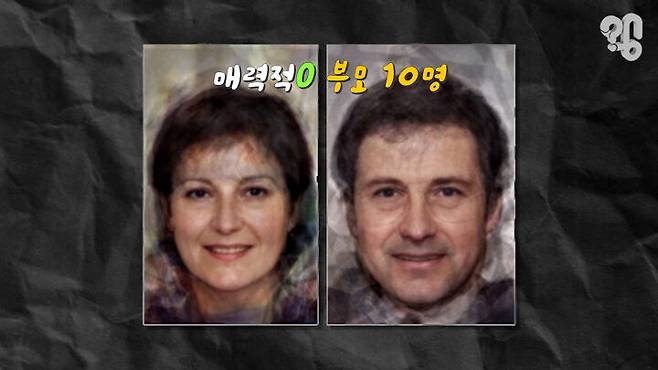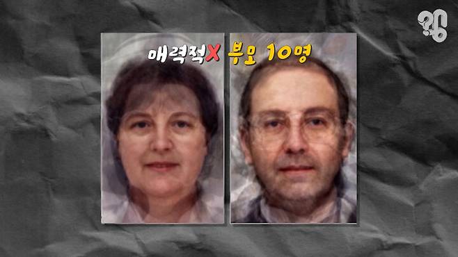 반대로 매력적이지 않다고 뽑힌 부모 10명의 딸들의 사진도 합성했다.