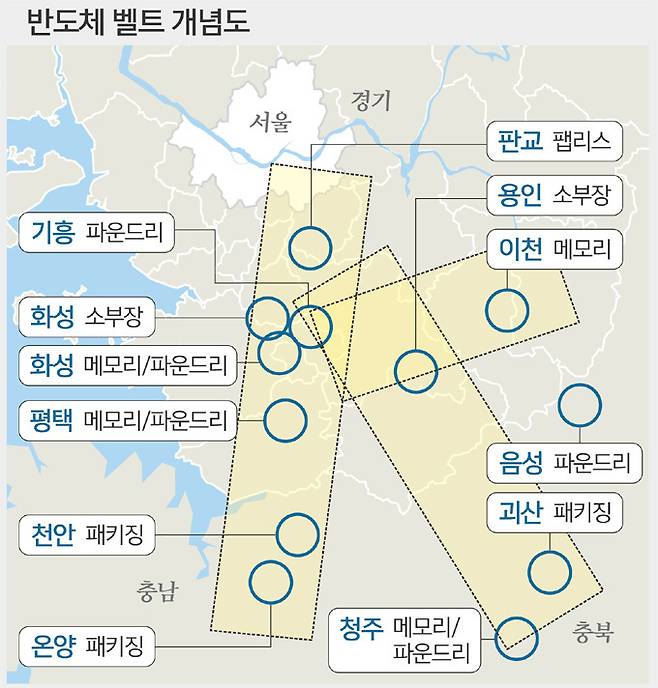 벨트 내에는 용인 반도체 클러스터를 비롯해 지역별로 반도체 관련 기업들이 들어서고, 이미 있는 곳에도 투자를 늘린다. 판교 부근에는 ‘한국형 팹리스 밸리’가 새로 조성된다. 또 국내에서 단기적인 기술추격이 어려운 EUV(극자외선) 노광, 첨단 식각 및 소재분야의 경우 외국인투자기업을 유치해 반도체 공급망을 보완할 계획이다.