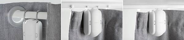 집에 설치돼있는 커튼의 끝자락에 스위치봇 커튼을 걸어둔다. 그리고 연동된 스마트폰으로 커튼을 여닫는다. 이것이 스위치봇 커튼의 기본 사용법이다. 커튼봉에 걸어둔 스위치봇 커튼이 원격 조종으로 왼쪽 혹은 오른쪽으로 이동하는 시스템이며, 커튼을 다시 닫는 것도 당연히 가능하다. 커튼봉이 직선으로 설치돼있지 않아도, 커튼이 무거워도 괜찮다. 커튼봉이 아닌 레일식(U레일, I레일) 커튼에도 설치가 가능하다. 마찬가지로 커튼을 걷는 쪽 끝자락에서 연결고리 하나만 남겨두고 설치하면 된다.