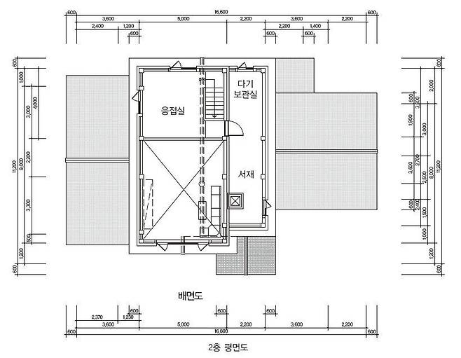 2층은 면적이 39.80㎡(12.6평)로 주방/식당 위에 20.00㎡(6.6평) 응접실이, 현관과 다용도실 위에 19.80㎡(6.0평) 서재 겸 다기茶器 보관실이 자리한다.