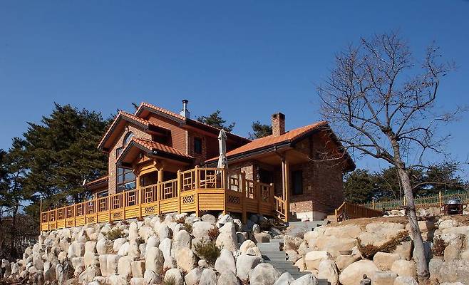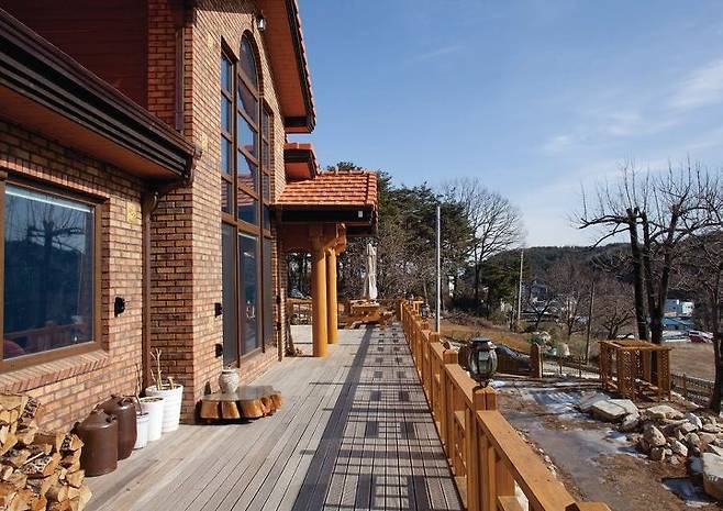 야트막한 산마루 가까이에 그것도 개량형 한식韓式 목구조로 위풍당당하게 앉힌 주택이라 인근 7번 국도(동해대로)에서 도드라져 보인다.