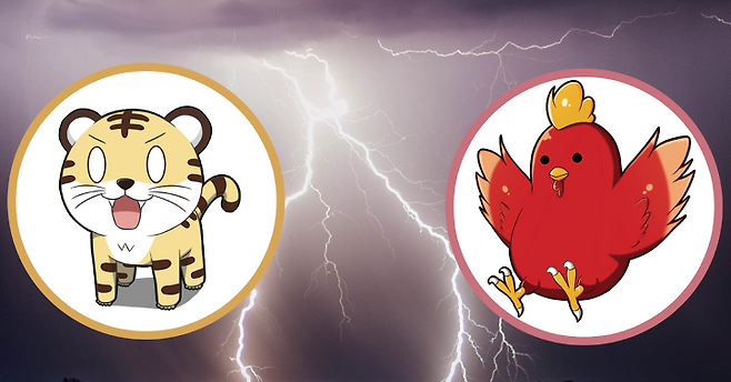 야행성인 호랑이에게 아침을 알리는 닭은 자신을 쫓아내는 존재임과 동시에 자신이 잠들어야 하는 시간에 자꾸 깨우는 존재이니 싫을 수밖에 없겠지요?