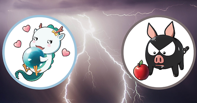 그런 만큼 당연히 용도 돼지도 서로 쳐다보기가 싫어지겠지요. 한마디로 서로 만나면 얼굴 보기 싫어하는 사이라 할 수 있겠네요.