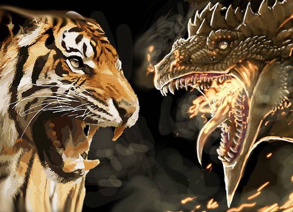 용은 유유히 창공을 날아다니지만, 돼지는 땅바닥을 보며 흙을 파헤치기 때문에 둘은 서로를 보려면 아주 목이 아프다고 해요.