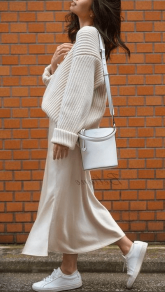 박시한 니트 웨어를 여리여리하게, 페미닌하게 연출하는 방법은 스커트와 매치하는게 가장 심플합니다.