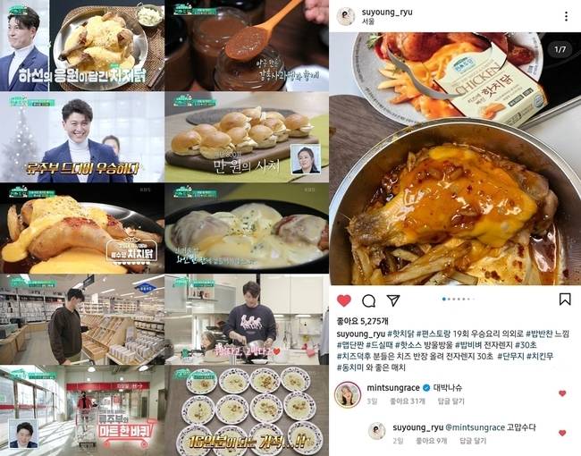 그런가 하면 ‘편스토랑’에서 류수영이 소개한 다양한 홈쿡 레시피들 역시 관심을 모으며 ‘류수영 레시피 따라잡기’ 열풍을 이끌고 있다. 첫 출연 때 소개한 류주부표 감자탕을 시작으로 카레, 감자수프, 치즈국수, 두부프렌치토스트, 밥솥치즈케이크, 치즈덮빵, 사치빵, 맛살 반찬, 감홍사과잼, 나초 소스, 치치닭까지. ‘내일 집에서 뭐 해먹지?’가 집집마다의 최대 고민인 요즘 류수영의 레시피로 직접 요리를 해보는 많은 시청자들이 온라인을 통해 이를 직접 인증하고 있다.