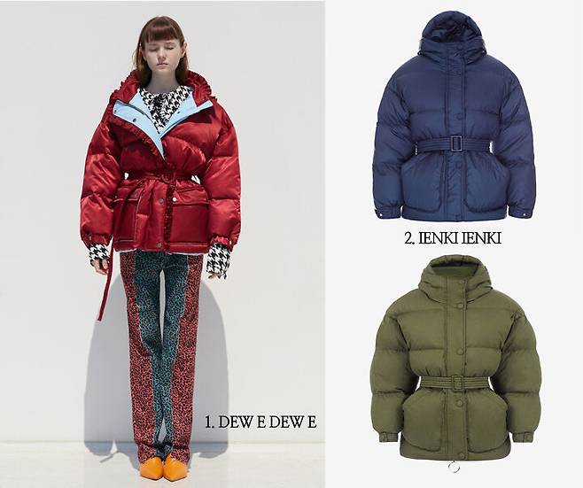 1. 와인 컬러 덕다운 벨티드 패딩 재킷. DEW E DEW E 가격 74만 1천원