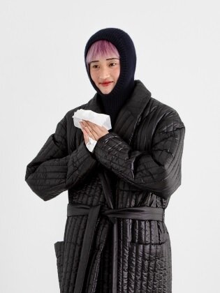1. 블랙 패딩 로브 코트. UNKNOWN BLUE 가격 32만 8천원