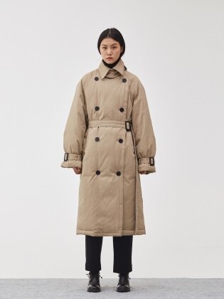 4. 베이지 오버핏 구스다운 패딩 트렌치 코트. JAING SONG 가격 64만원