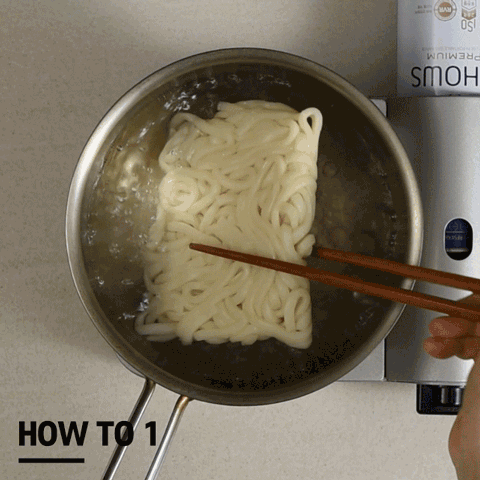 팔팔 끓는 물에 우동 면을 넣고 1분간 삶아 주세요. 면은 나중에 카레와 함께 한 번 더 끓여야 하니 살짝 덜 익힌 상태가 좋아요.