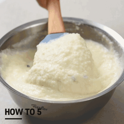 부드러운 감자 크림에 소금과 후춧가루로 간을 한 뒤 짤주머니에 넣어주세요. 짤주머니가 없을 경우 지퍼백을 이용해도 괜찮답니다.