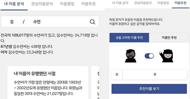'my네임 내이름분석' 서비스에 대한 관심이 높아지고 있다.