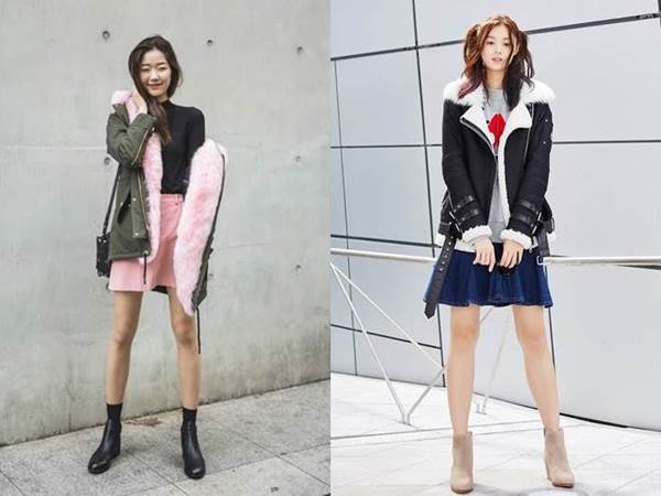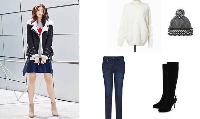 여기에 스니키진과 싸이 하이 부츠를 함께 매치해준다면 날씬한 실루엣과 더불어 걸크러쉬 매력을 느껴볼 수 있다. 털모자나 이너로 앙고라 니트를 선택해 좀더 겨울 느낌을 더해보는 것도 좋은 방법이다.