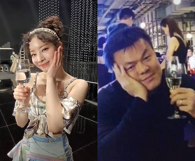 "사장님 놀리는 사원"..트와이스 다현-쯔위, 박진영 짤 소환