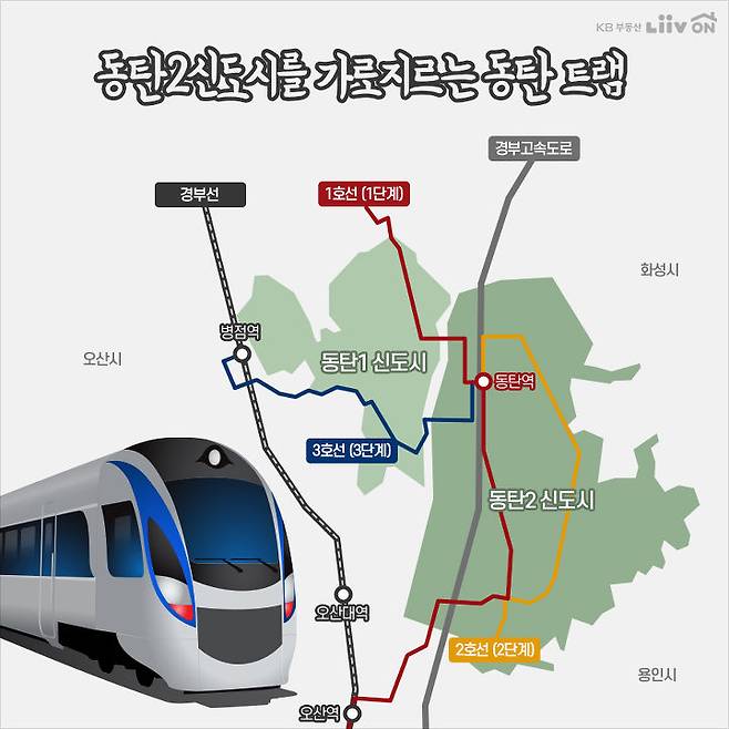 여기에 동탄2신도시를 가로지르는 동탄 트램 사업이 지난 5월 확정되면서 기대감이 고조되고 있습니다. 동탄 트램은 반월교차로~오산역, 병점역~동탄역을 오가는 32.35㎞ 구간으로 2025년 개통을 목표로 하고 있는데요. 동탄 트램 1·2호선이 교차하는 환승역 예정지인 동탄역, 동탄호수공원으로 투자자의 관심이 쏠리고 있습니다.