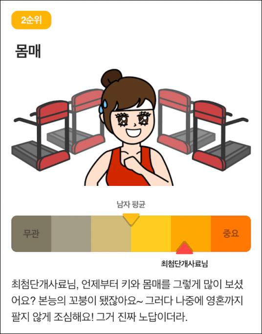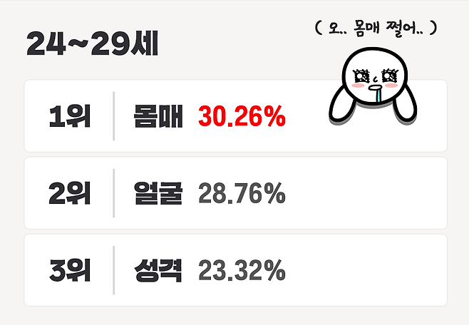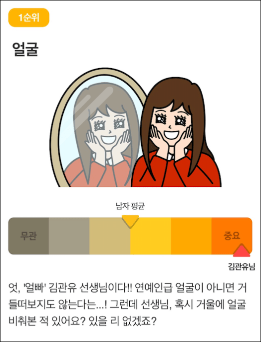 얼굴과 몸매가 엄청난 비중을 차지하네요.