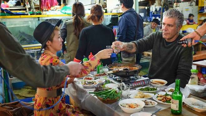 - 방송 프로그램 "Parts Unknown"에서 부대찌개를 소개하기 위해 한국을 찾은 미국의 요리사이자 방송인 앤서니 보데인. 출처: CNN