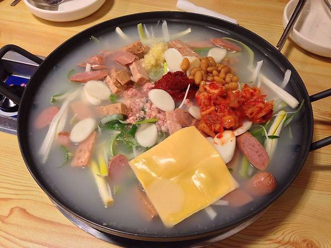 무려 부대라는 이름이 붙을 만큼 전쟁의 아픔과 비애가 연상되는 이 요리는 그에 못지않게 서민들의 사랑을 받으며 다양한 재료의 혼합 속에 미군 주둔 부대와 가까운 곳으로부터 식당들이 잘 들어선 골목 사이 사이에 퍼져나갔다.