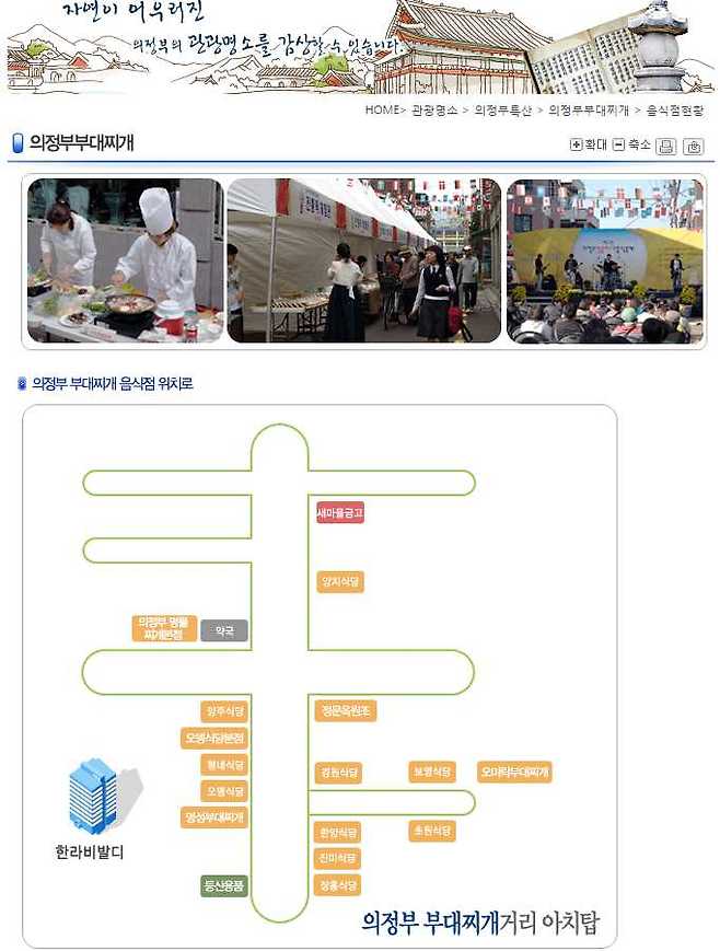 - 의정부시 홈페이지에서 소개 중인 부대찌개 거리