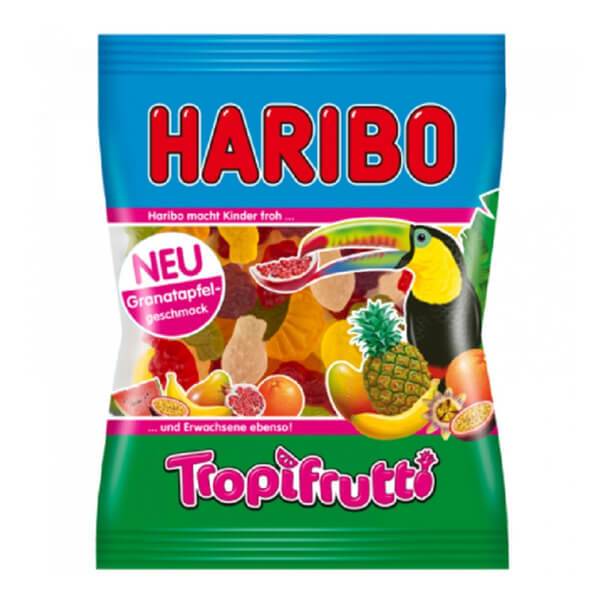 열대과일 맛과 모양을 가진 젤리이다. 딱딱한 겉면과 달리 속 안은 쫀득한 식감을 자랑한다. 바나나, 망고, 패션후르츠, 파인애플 등의 5가지 맛으로 구성되어 있다. 랜덤으로 열대지방의 상징 투칸 모양의 젤리가 들어있기도 하다. 독일에서는 하리보 젤리 중 인기 상위권을 차지하고 있는 트로피프루티이지만, 우리나라에서는 인기가 높은 편은 아니다.