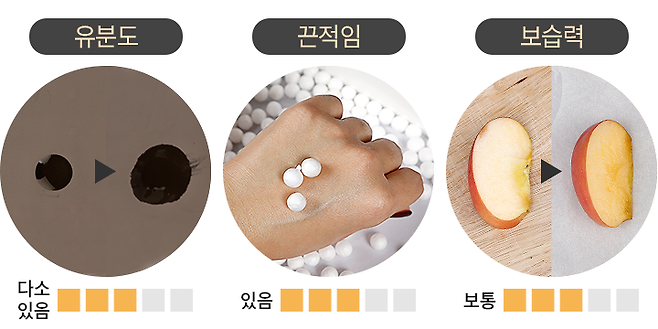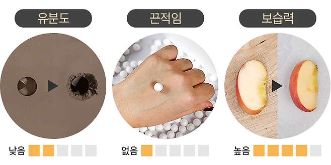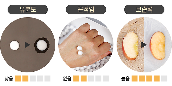 사용 후 피부 톤이 밝아지면서 안색이 맑아지고, 피부가 전체적으로 진정되는 느낌이었는데요, 단순히 피부 톤만 밝아지는 게 아닌 속부터 투명하게 올라오는 느낌이라 '내 피부가 정말 좋아지고 있음'을 느끼게 해주는 제품이었어요. 쫀쫀하게 올라오는 찰기 가득 피부를 원한다면, 메이크업 베이스 제품에 섞어 발라주어도 좋아요! 보습력도 높아 아침에 사용 후, 늦은 시간까지도 당김이 느껴지지 않았답니다. 이는 보습력 테스트를 통해서도 입증받을 수 있었어요.