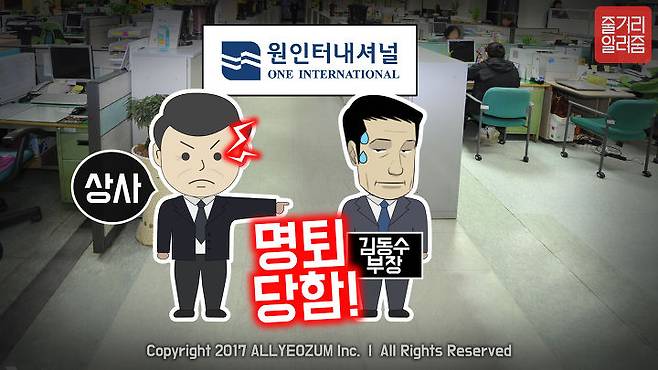여기, ‘원 인터’에서 20년간 근무하다가 상사와의 갈등 때문에 명퇴를 당했던 김동수 부장이 있습니다.