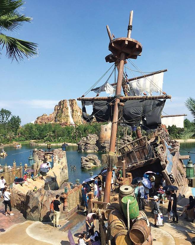 가장 기억에 남는 어트랙션은 영화 <캐리비안의 해적> 속 잭 스패로우 선장과 해적선을 타고 다니는 '트레저 코브'임! 여행 가이드북에는 이렇게 적혀있더라.