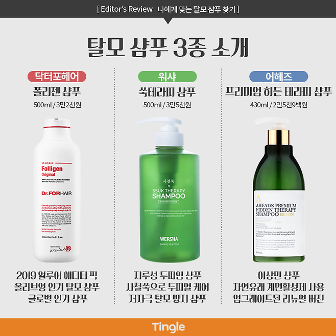 탈모 샴푸 베스트 3를 소개할게.