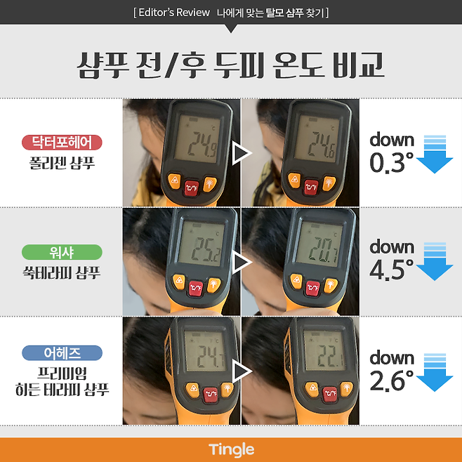 두피 온도를 비교해봤어.