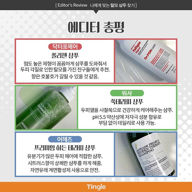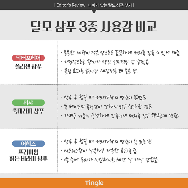 인기 탈모 샴푸 3종의 리뷰