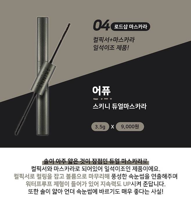 4. 어퓨 스키니 듀얼마스카라 3.5g/9000원